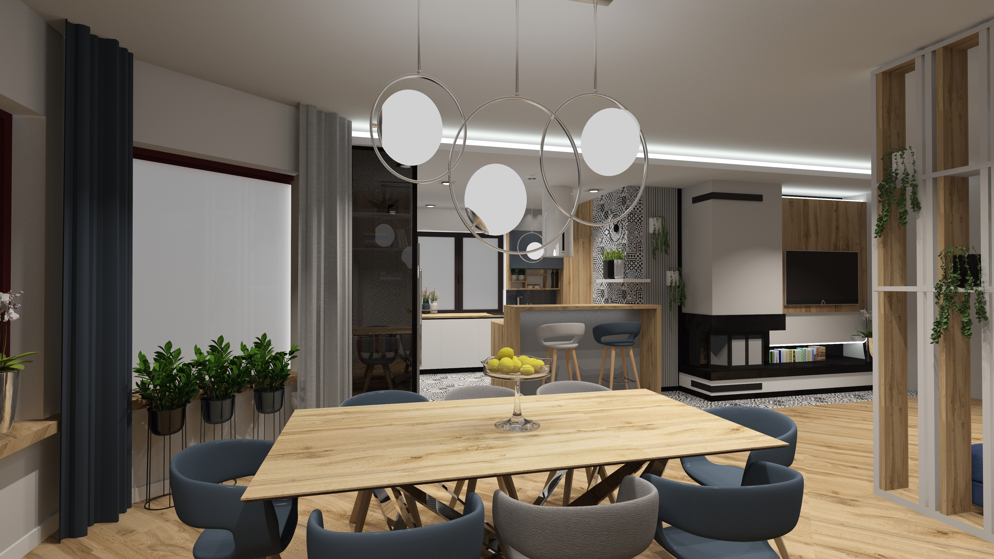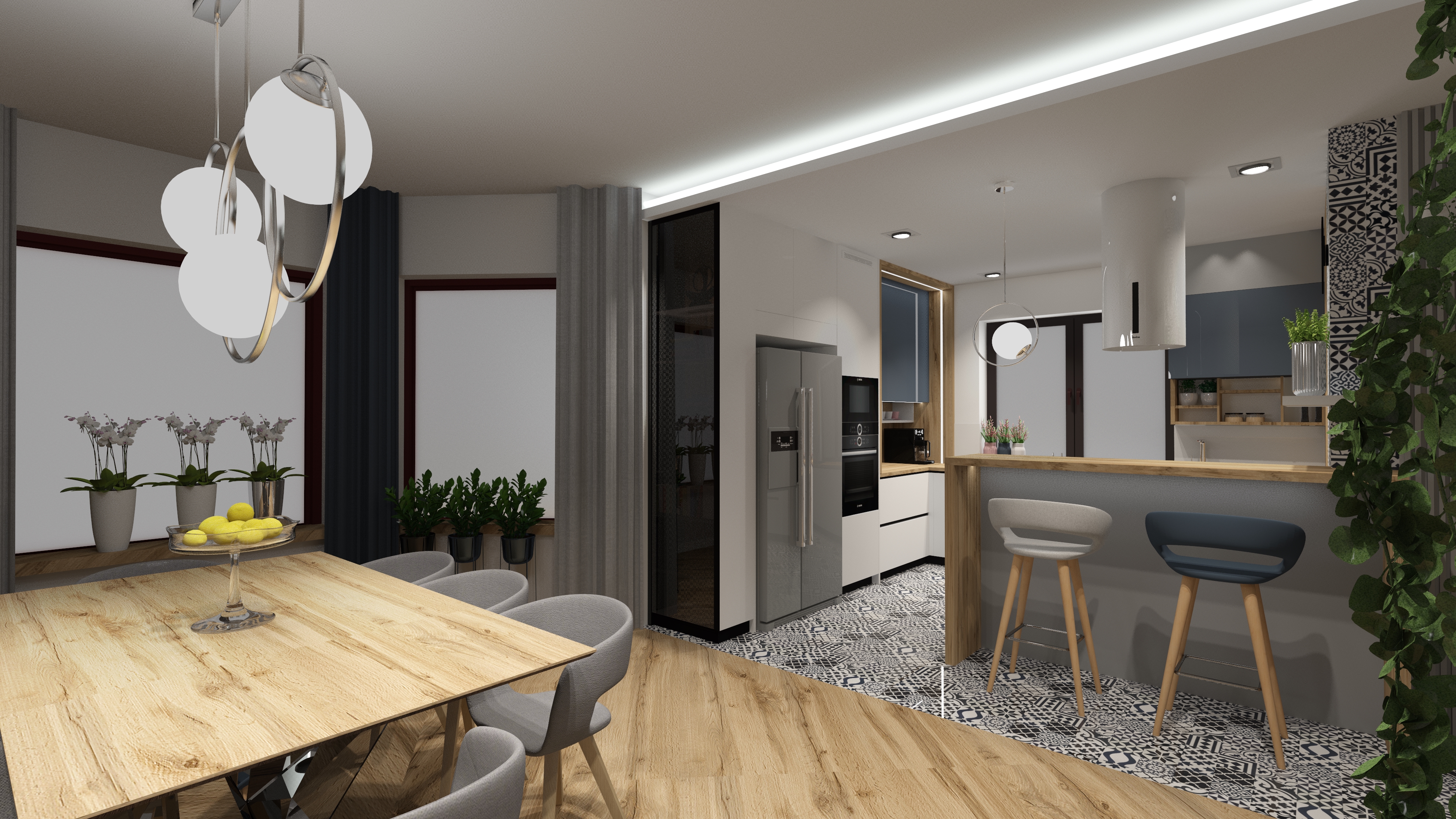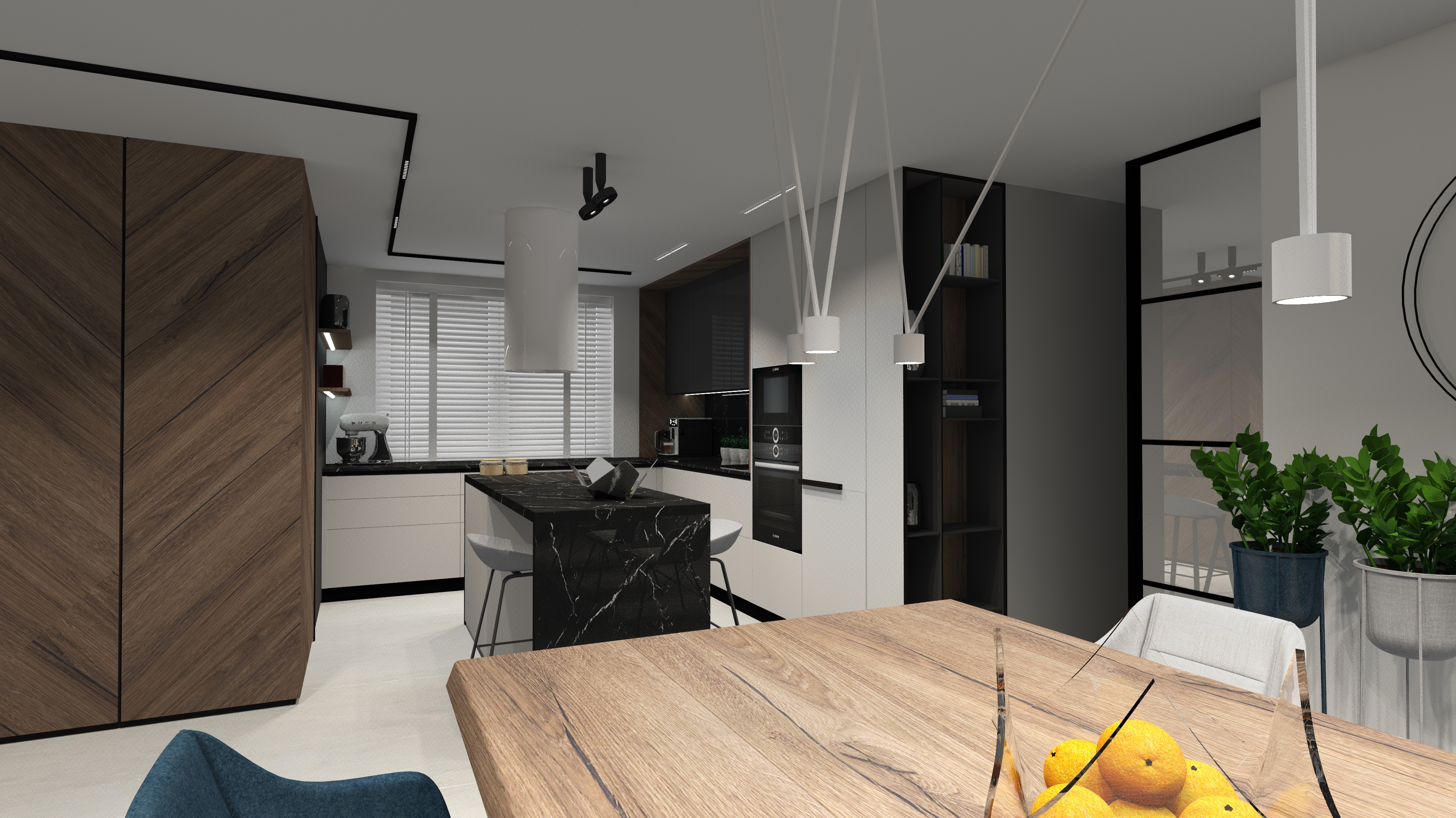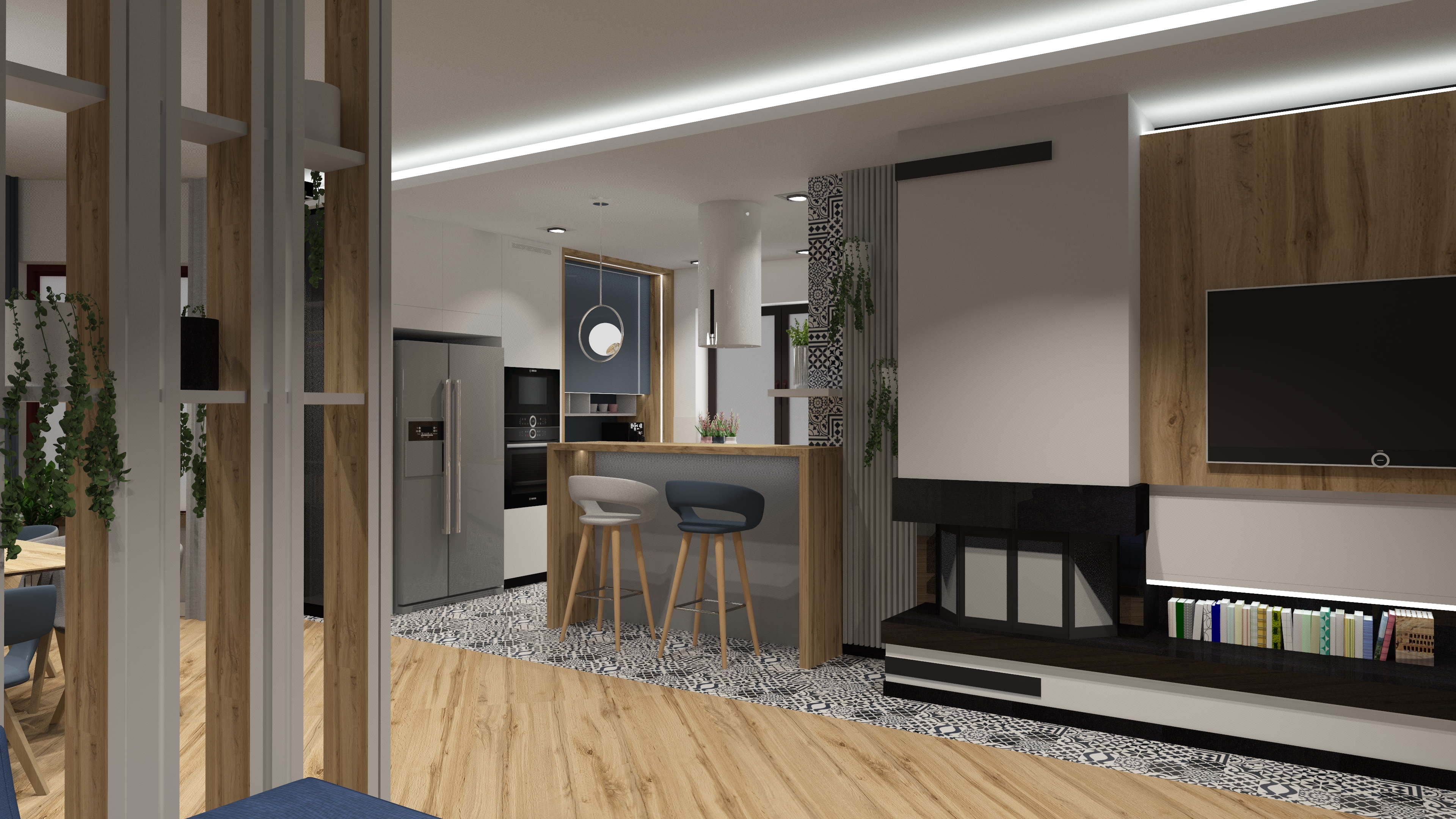 opracowanie: projekt strefy kuchni i kominka