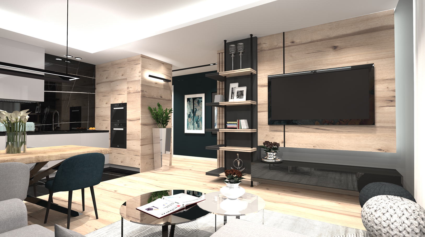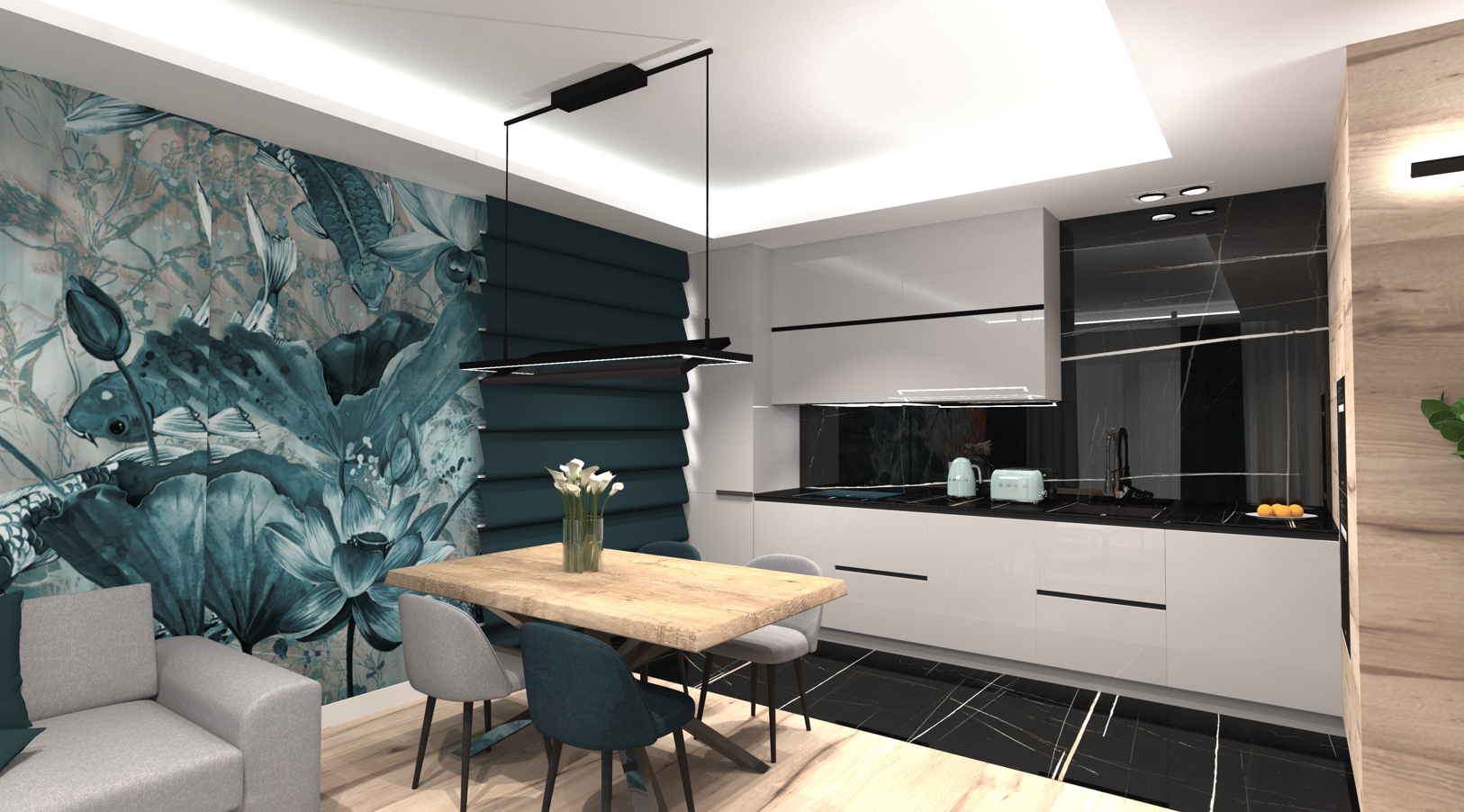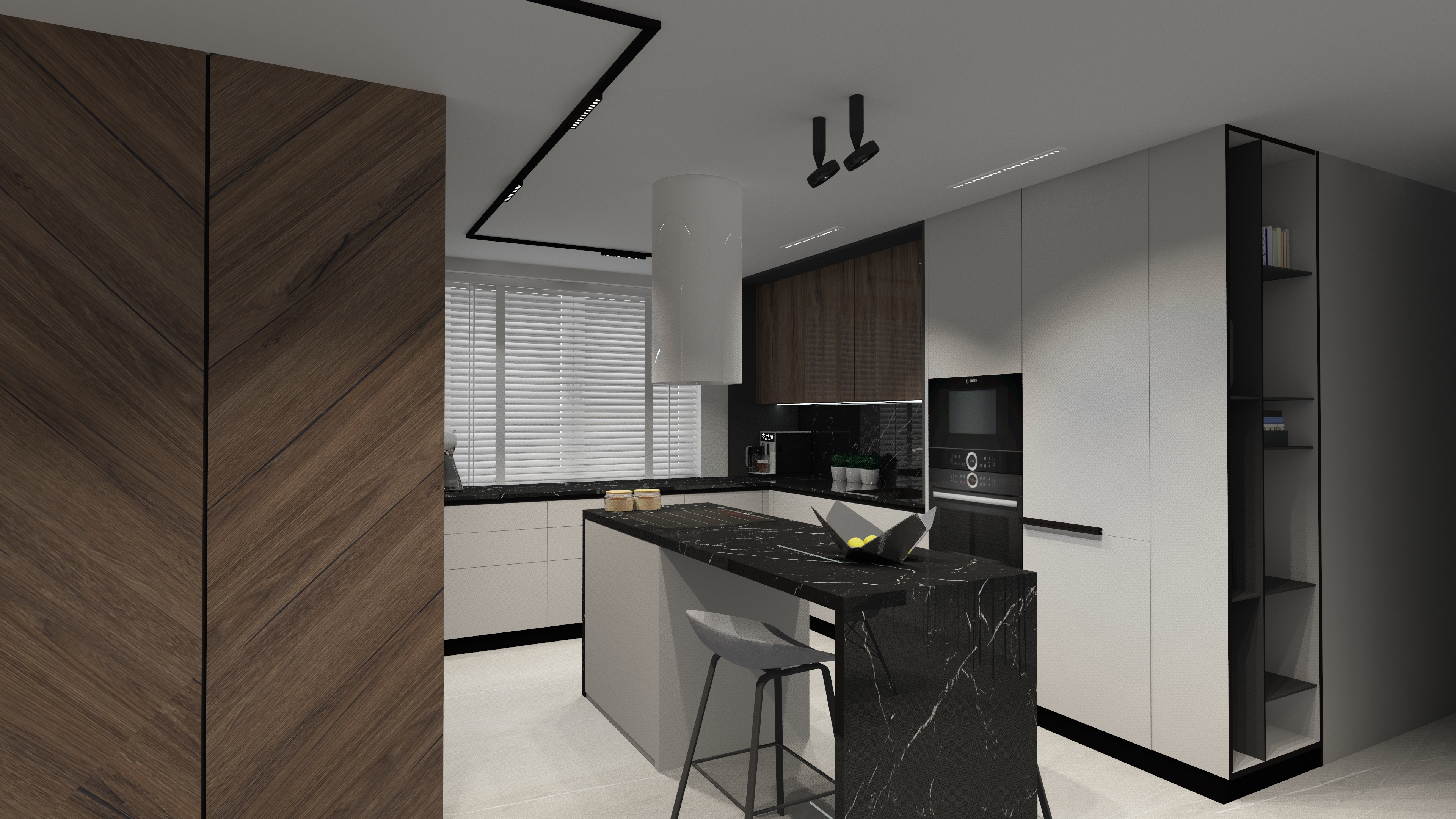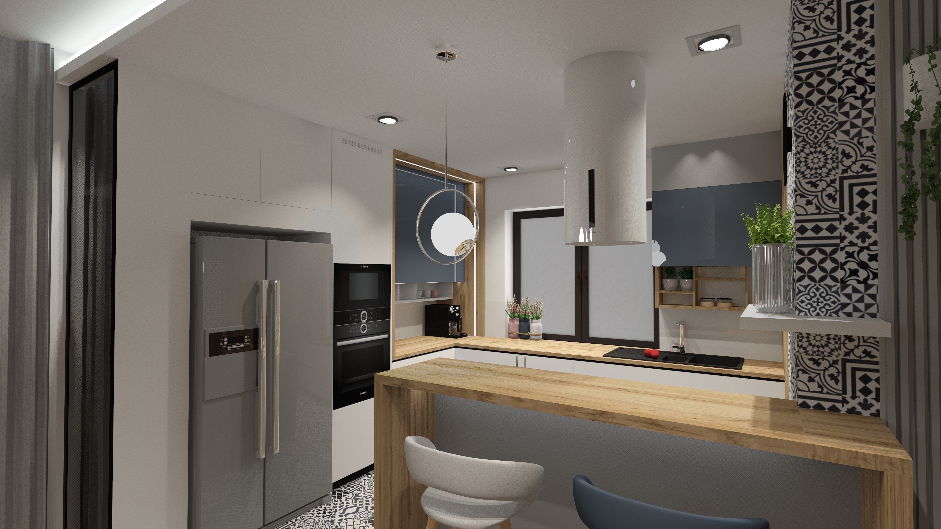 opracowanie: projekt strefy kuchni i kominka