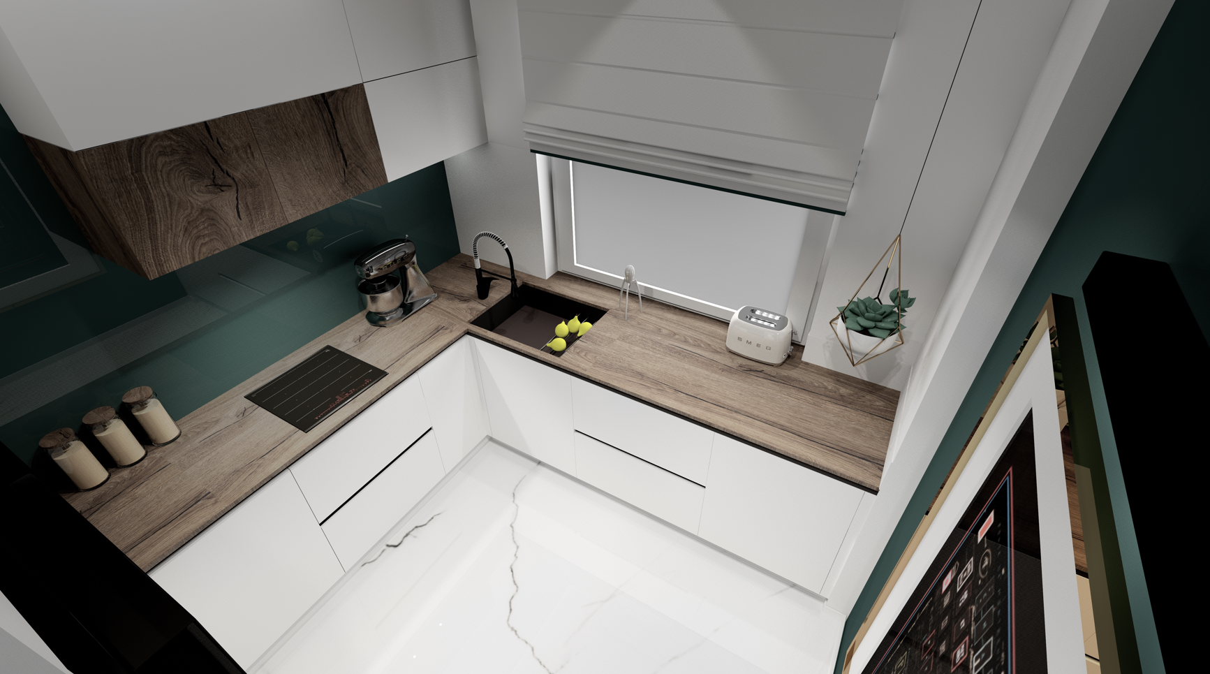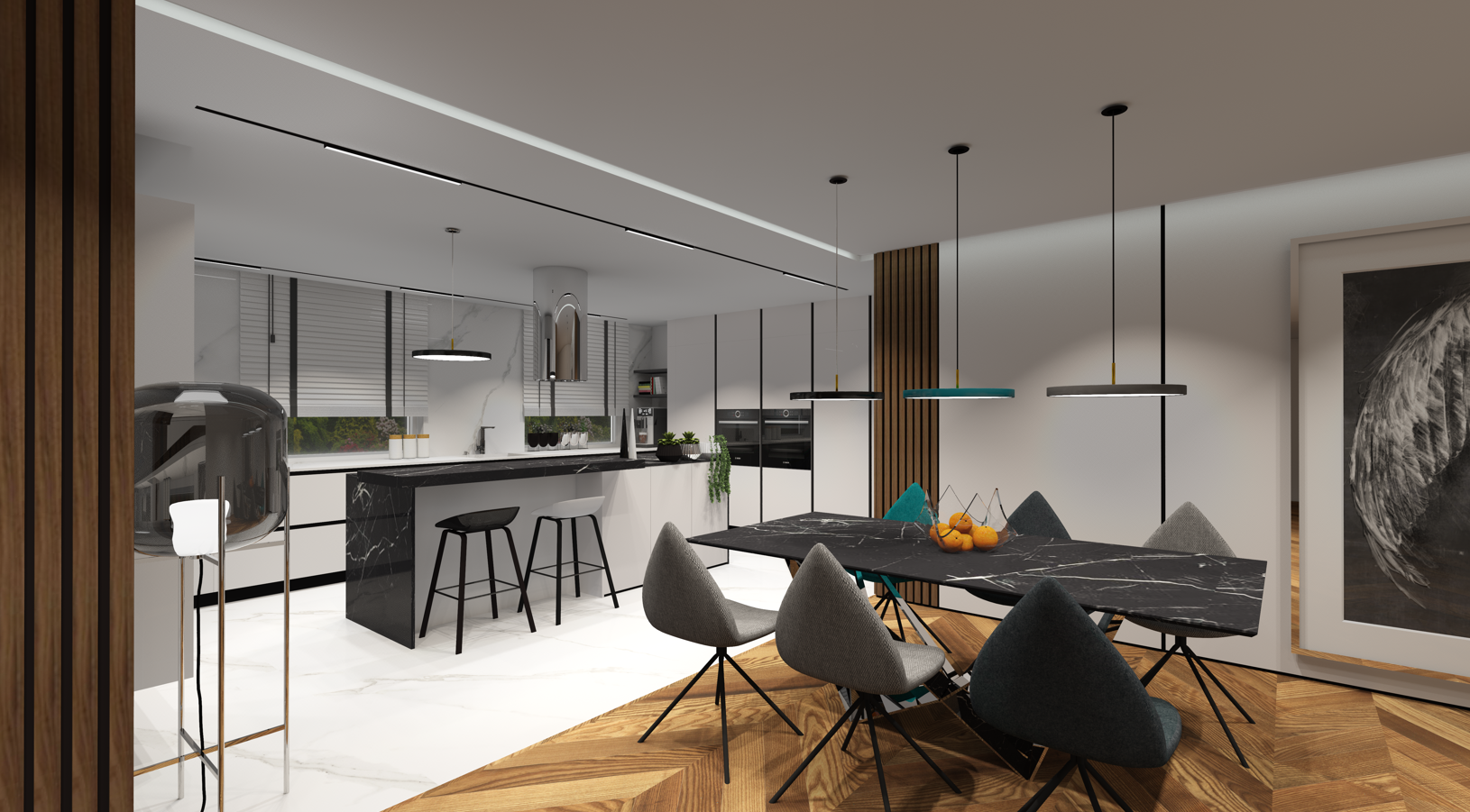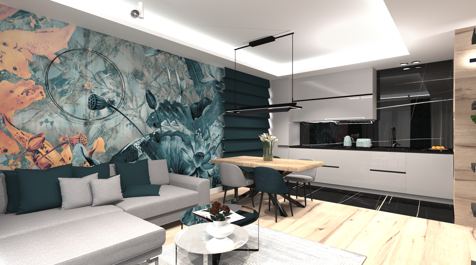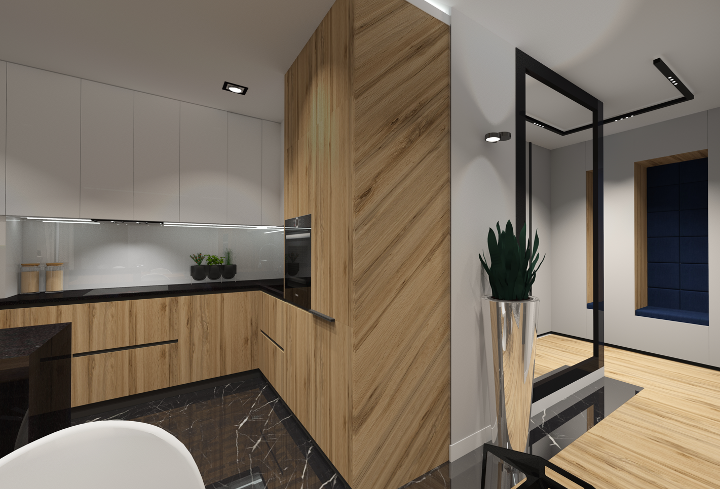 opracowanie: projekt strefy kuchni i kominka